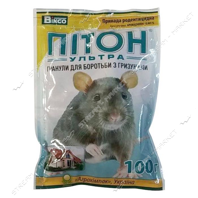 Цей продукт є ідеальним рішенням для знищення гризунів. Висока ефективність. "Пітон" дозволяє знищити гризунів швидко і без особливих зусиль. Безпека використання. При правильному застосуванні гранули не представляють загрози для людини і домашніх тварин. Простота застосування. "Пітон" не вимагає складних умов використання і може бути впроваджений на будь-якій території: в квартирах, приватних будинках, садах тощо. Тривала дія. Препарат від гризунів "Пітон" діє тривалий час, забезпечуючи вас спокоєм на довгий період. Не терпіть шкідників у своєму дому! Використовуйте "Пітон" і отримайте надійне і ефективне рішення проблеми з гризунами.