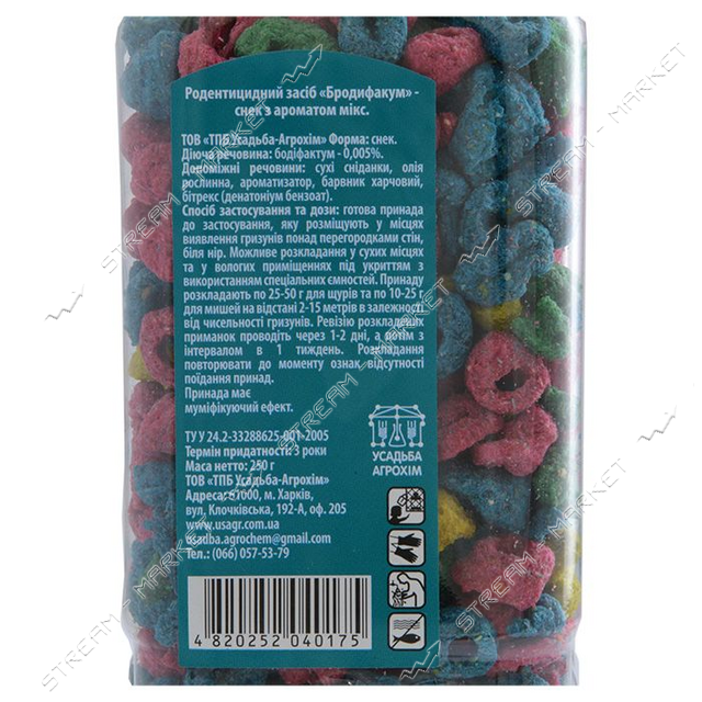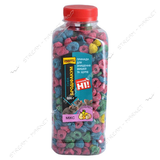 Безпрецедентний засіб у боротьбі з гризунами - Бродифакум у гранулах "Снек". Ефективність, швидкість дії та безпека - все в одній банці. Гранули успішно впораються навіть з найвитривалішими гризунами, виключаючи можливість їх повернення. Бродифакум "Снек" починає діяти вже після першого прийому, забезпечуючи швидкий результат. Спеціальна формула гранул є безпечною для домашніх улюбленців та людей при дотриманні правил використання. Всього 200(250)г продукту здатні обробити велику територію. Приєднуйтесь до числа тих, хто вже встиг оцінити ефективність Бродифакум "Снек". Купуйте якісний засіб проти гризунів прямо зараз!