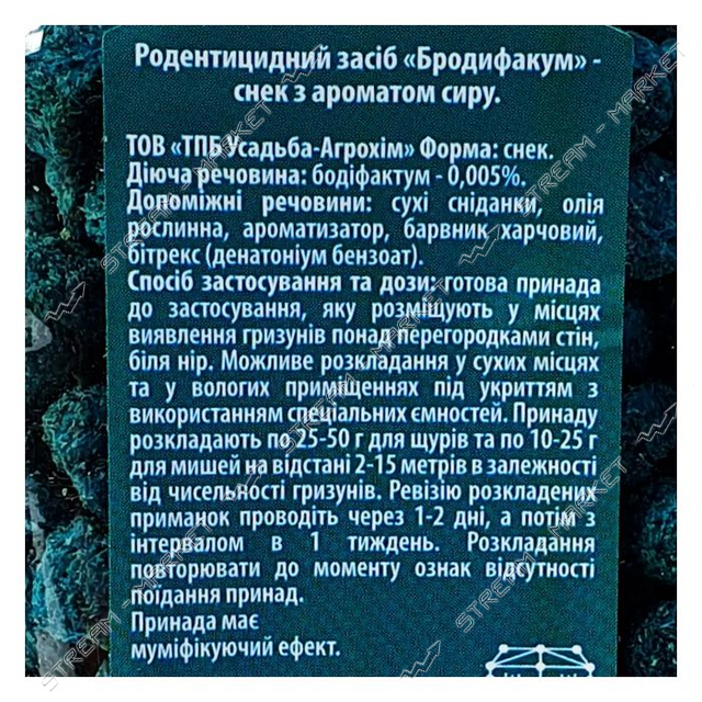"Бродифакум" Гранули "Снек" в банці - це надійний і ефективний засіб для знищення гризунів. Використовуйте його, і ваш будинок або ділянка знову стануть затишними та безпечними. Швидкодіючий - "Бродифакум" працює швидко і безвідмовно, починаючи діяти відразу після прийому гризунами. Економічний - обсяг 200г спільно з високою концентрацією активних речовин дозволяє використовувати меншу кількість продукту. Зручний - форма гранул приваблює гризунів та спрощує дозування. Замовте "Бродифакум" Гранули "Снек" вже сьогодні та поверніть спокій у ваше життя!