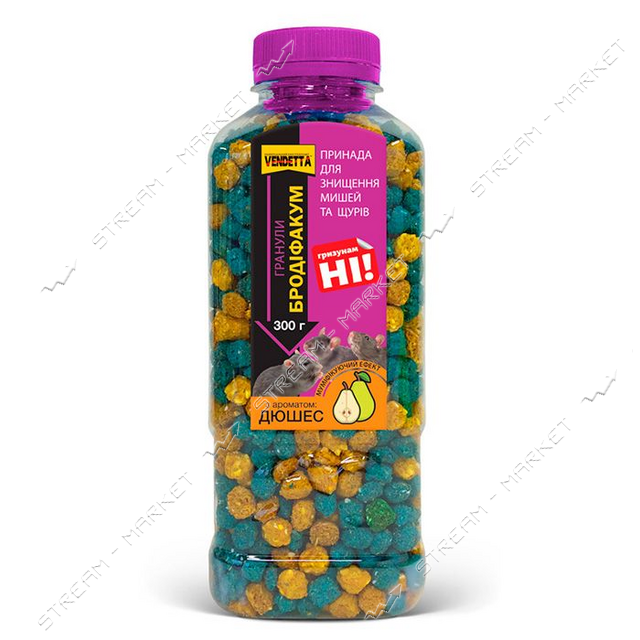 Ваш вірний помічник у боротьбі з гризунами - "Бродифакум"! Цей продукт обирають професіонали. З його допомогою ви швидко та ефективно знищите небажаних "сусідів", при цьому він безпечний для людини та домашніх тварин при правильному застосуванні. Достатньо одноразового застосування, щоб вирішити проблему з небажаними гризунами. Формула "Бродифакум" розроблена таким чином, щоб задовольнити рецептори гризунів, при цьому залишаючись безпечною для вашого будинку. "Бродифакум" працює проти всіх видів гризунів, включаючи щурів та мишей. Гранули зберігають свої властивості протягом тривалого часу та приваблюють гризунів, поки не виконається повне винищення. Не допускайте, щоб гризуни перетворили ваш дім на свій: використовуйте "Бродифакум" і повністю позбавтеся від них!