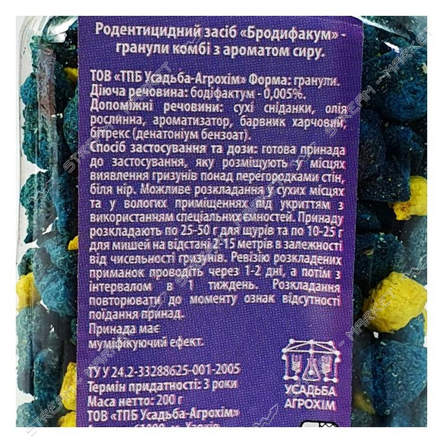 Бродифакум "Комбі" у гранулах - ЕФЕКТИВНЕ та БЕЗПЕЧНЕ рішення проблеми з гризунами! Всього 200г цього засобу здатні повністю знищити біологічну загрозу вашого будинку або ділянки. Гранули мають специфічний смак і запах, який майже неможливо сплутати зі звичайними продуктами харчування. Результат видно вже на наступний день. Бродифакум має кумулятивний ефект, тому гризун гине дуже швидко. В банці 200г - цілком достатнє кількість для обробки середнього дачного майданчика або приватного будинку. Ідеально підходить для ліквідації щурів та мишей всіх видів. Бродифакум потужний і ефективний проти всіх видів гризунів. Захистіть свій дім від шкідників вже сьогодні! Бродифакум "Комбі" - перевірений засіб боротьби з гризунами. Зробіть свій вибір на користь безпеки та ефективності!