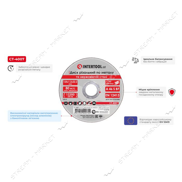 Круг відрізний по металу Intertool CT-4007 125х1.2х22.2мм