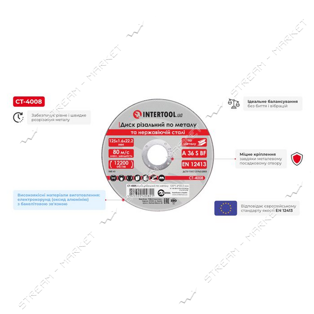 Круг відрізний по металу Intertool CT-4008 125х1.6х22.2мм