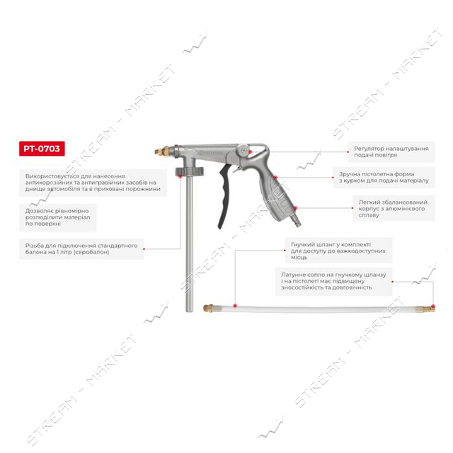 Пістолет під гравітекс Intertool PT-0703 пневматичний з гнучкою насадкою