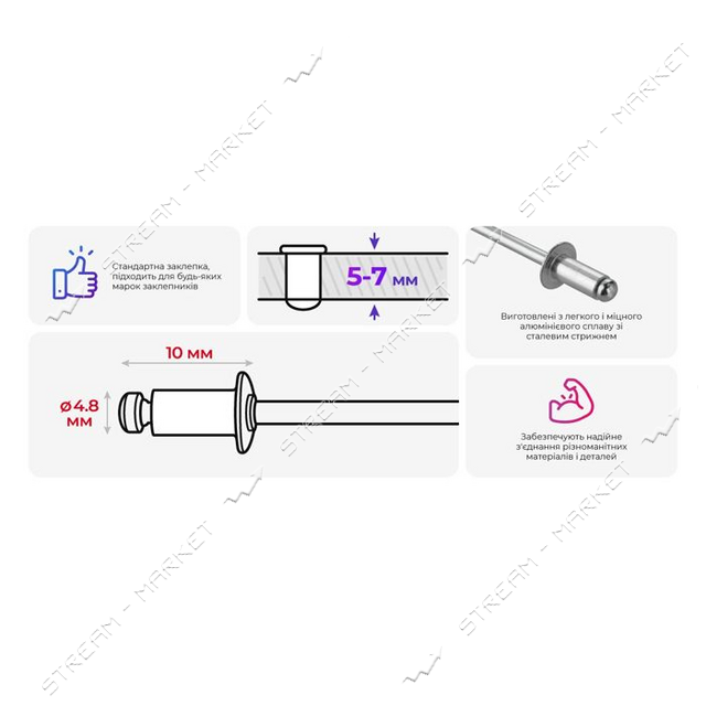 Заклепка Intertool RT-4810 алюмінієва 4.8х10мм