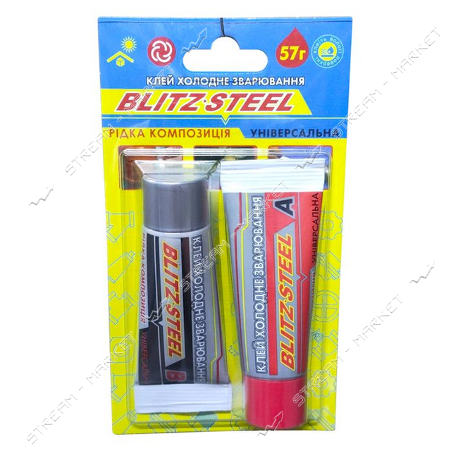 Клей Холодне зварювання рідке, двокомпонентна композиція "Blitz steel" універсальна (57 г) — це ідеальне рішення для швидкого та надійного ремонту. Універсальна формула дозволяє ефективно застосовувати її на різних поверхнях: метал, пластик, кераміка і навіть дерево. Завдяки високій міцності та водостійкості, "Blitz steel" є незамінним у ремонті побутових і автомобільних виробів. Зручне фасування 57 г забезпечує економне застосування, а легкість у використанні робить його доступним як для професіоналів, так і для любителів. Наша зварка стійка до екстремальних температур та корозії, гарантуючи довговічність усіх ваших проектів.