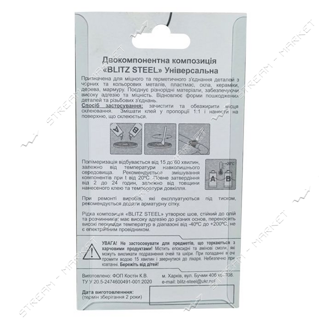 Клей Холодне зварювання рідке двокомпонентне композиція Blitz steel універсальне 40г