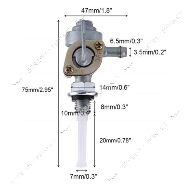 Кран паливний генератора 188F ліворуч зовнішнє різьблення