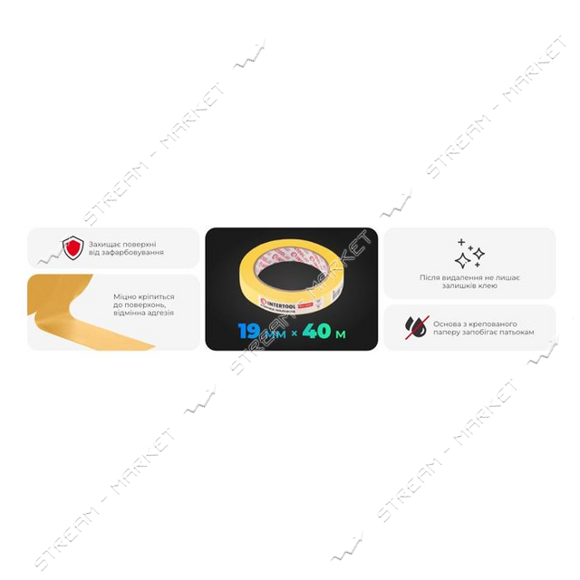 Стрічка малярна Intertool DM-1940 19мм х 40м жовта 12шт