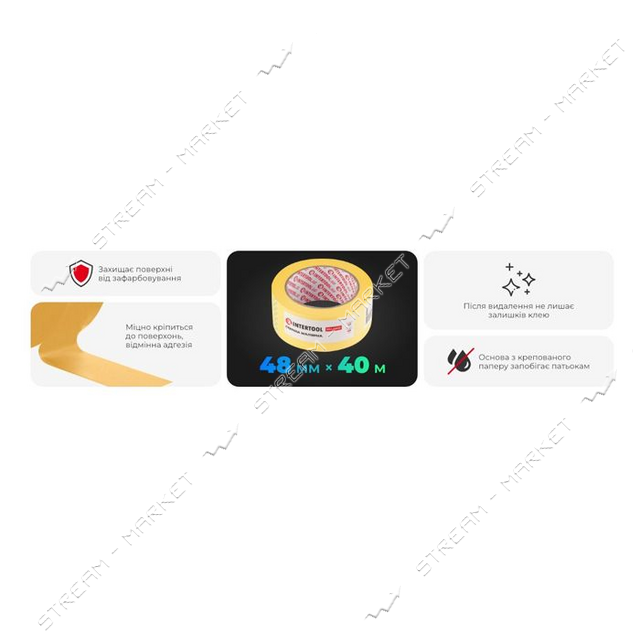 Стрічка малярна Intertool DM-4840 48мм х 40м жовта 4шт