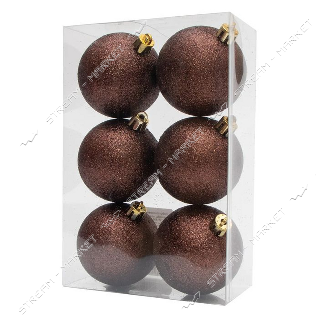 Набір новорічних пластикових куль Блиск d10см 6шт коричневий