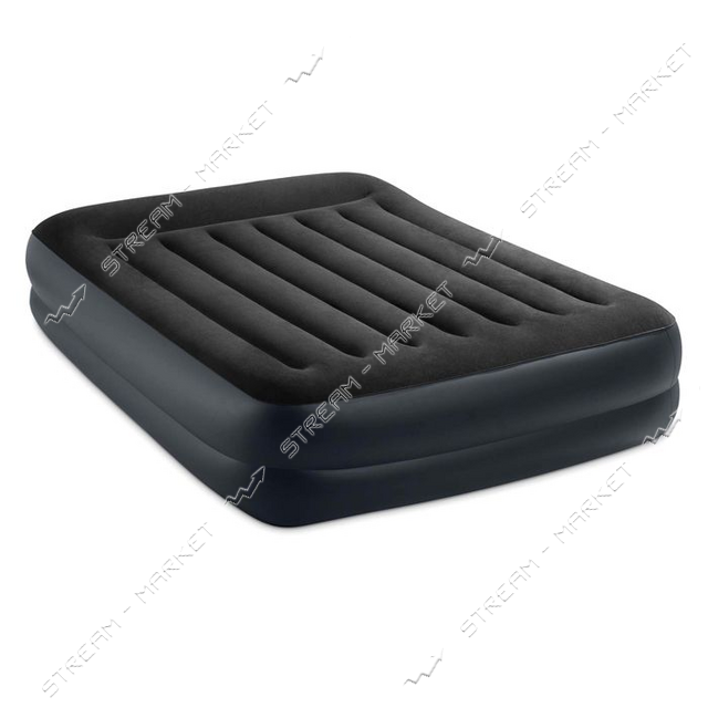 Надувний матрац Intex двомісний Pillow Rest Raised 152х203х42см вбудований електронасос 64124