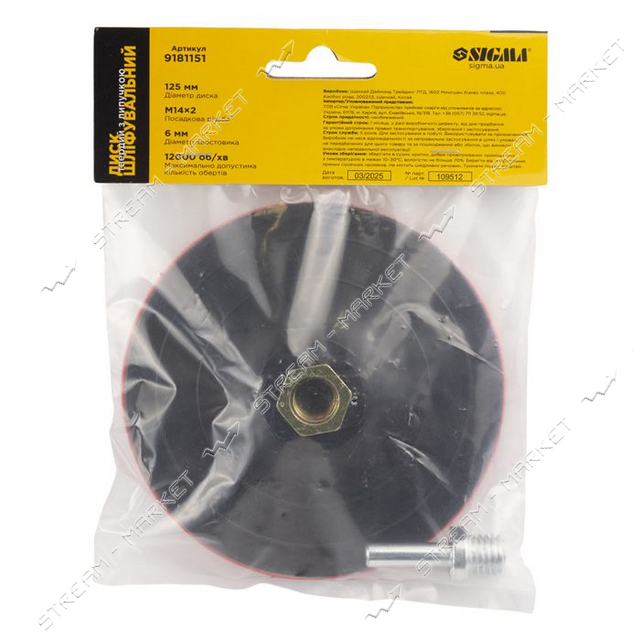 Насадка гумова для дрилі Sigma 9181151 з липучкою d 125