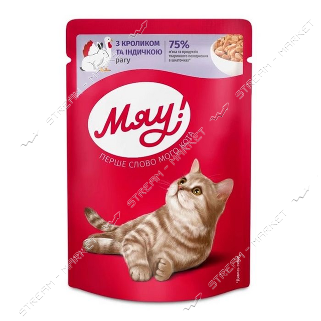 Рагу МЯУ пауч з кроликом та індичкою корм для котів 85г оптом за самою вигідною ціною в Україні! Компанія Stream Market: Харків, Київ. тел: 067-624-49-19.