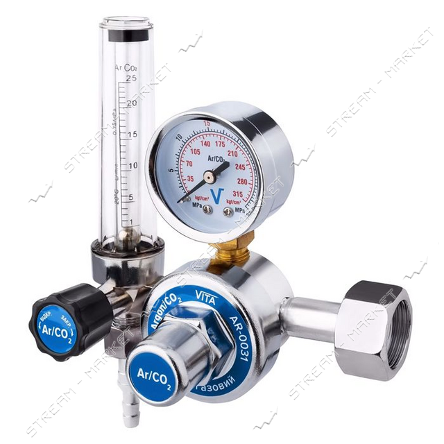 Редуктор з манометром та ротаметром Vita AR плюс CO2 корпус хром