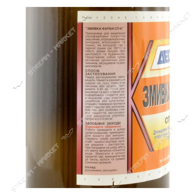 – химическое вещество прозрачного цвета, предназначенное для удаления лакокрасочных покрытий на масляной основе, битумных и каучуковых мастик;