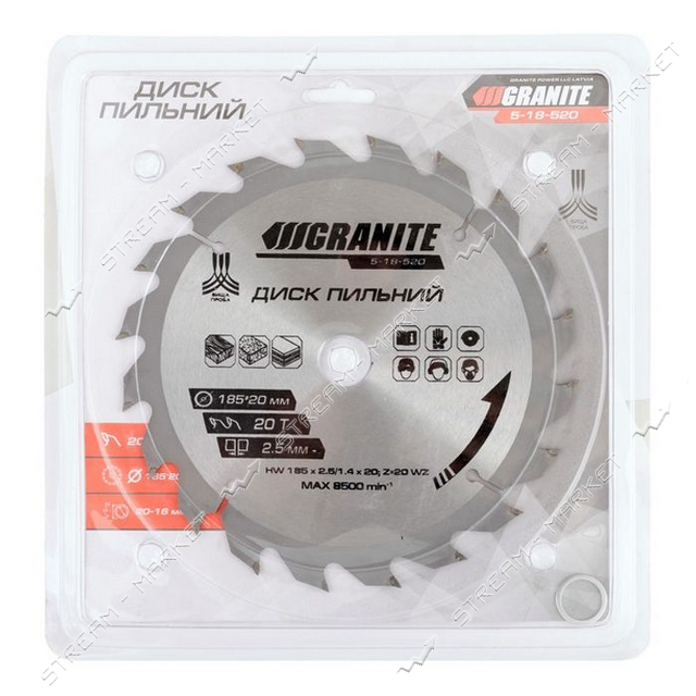 Диск пильный по дереву Granite 5-18-520 185х20х20Т адаптер 20-16