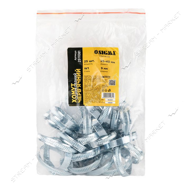 Хомут червячный оцинкованный Sigma 2511081 9мм d25-40мм 25шт