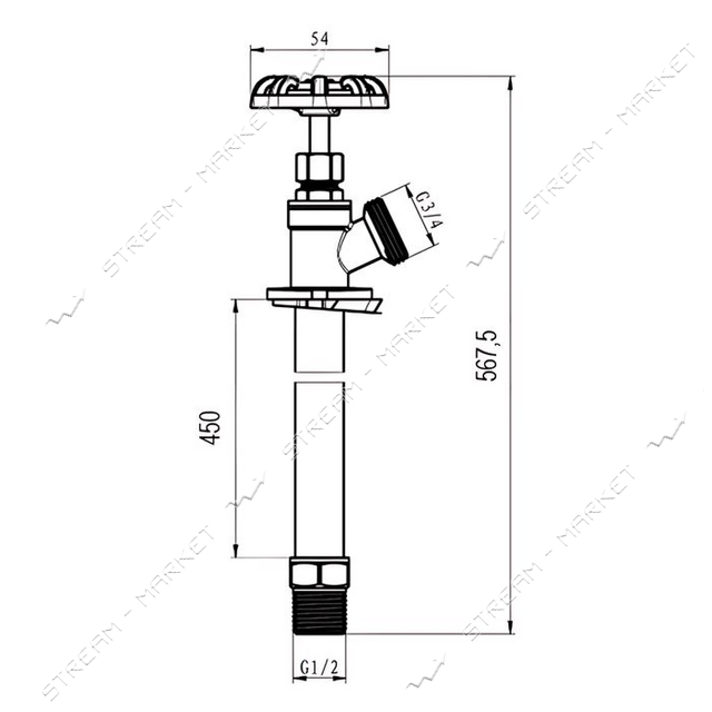 Кран для полива Koer KR.290-45 садовый незамерзающий 45см