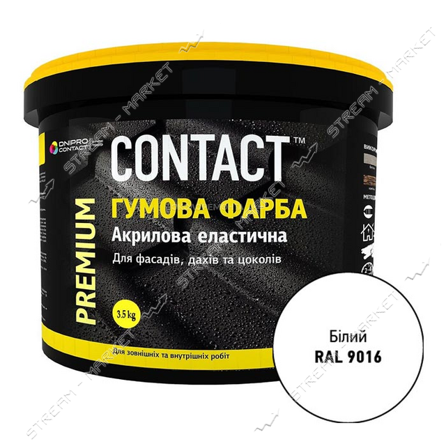 Краска резиновая Contact RAL-9016 3.5кг белая оптом по самой выгодной цене в Украине! Компания Stream Market: Харьков, Киев. тел: 067-624-49-19.