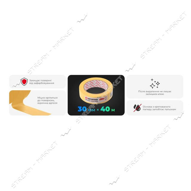 Лента малярная Intertool DM-3040 30мм х 40м желтая 8шт оптом по самой выгодной цене в Украине! Компания Stream Market: Харьков, Киев. тел: 067-624-49-19.