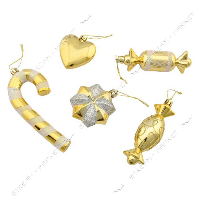 Набор новогодних пластиковых игрушек ВАТ-319 21шт золотой оптом по самой выгодной цене в Украине! Компания Stream Market: Харьков, Киев. тел: 067-624-49-19.