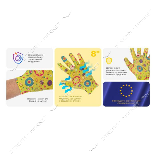 Перчатки садовая с нитриловым покрытием Intertool SP-0165 8" желтые