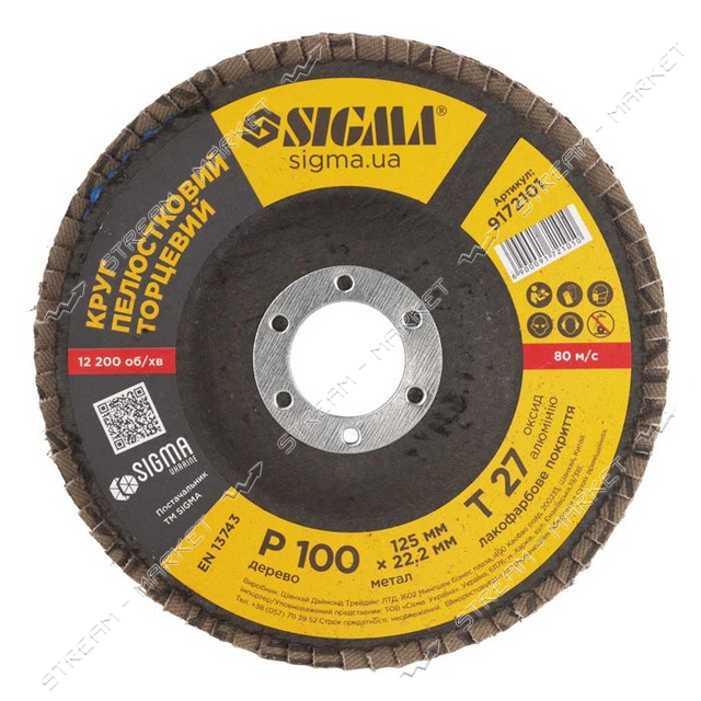 Диск шлифовальный лепестковый Sigma 9172101 125мм Р100