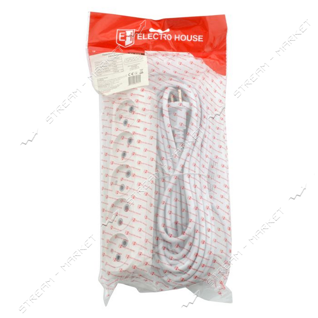 Удлинитель Electro House ЕН-2257 5 гнезд 10м без заземления 16А белый