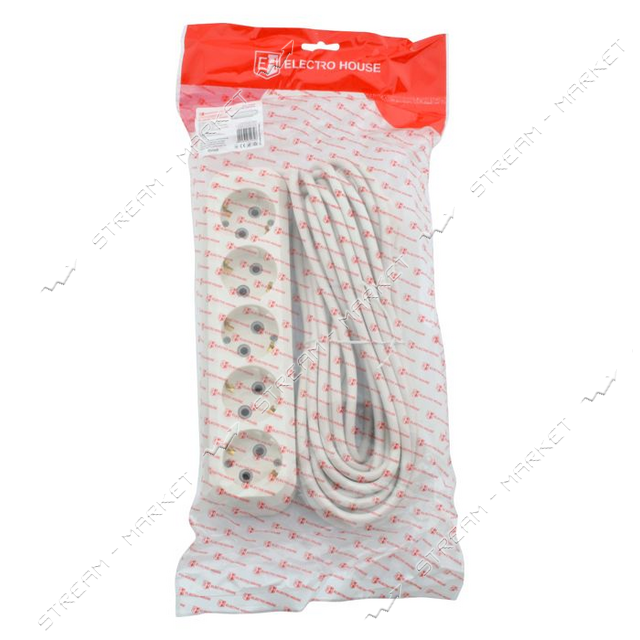 Удлинитель Electro House ЕН-2260 5 гнезд 10м с заземлением 16А белый