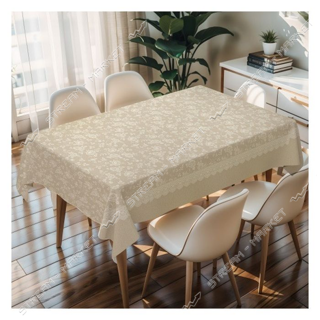Скатертина з ажурного вінілу є ідеальним варіантом для застілля. Ви більше не будете турбуватися, якщо хтось із гостей кинув на стіл жирний шматок м'яса або розіллє вино. Всі плями блискавично видаляються, не залишаючи слідів. Те, що зіпсувала б тканинну скатертини (наприклад: лляну скатертину), абсолютно безпечно для вироба зі штучного матеріалу.
