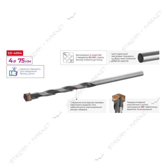 Код: 702694Свердло по бетону Intertool SD-4005 5х85ммДіаметр, мм: 5, Конструкція робочої частини: Бесперемичні, Конструкція хвостової частини: Циліндричні, Призначення: Свердла по бетону, Виробник: Intertool, Тип: Свердла, Фасовка, шт: 1,