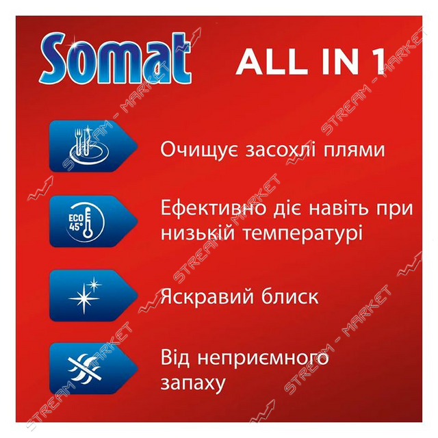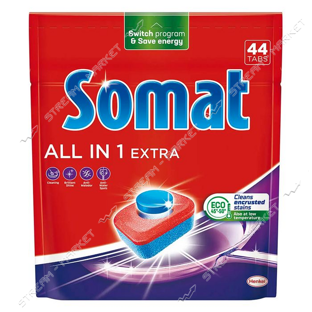 Занурте свій посуд у світ чистоти та блиску з таблетками для посудомийних машин Somat All In 1 Extra. Ці універсальні таблетки забезпечують виняткову якість миття, дбаючи навіть про найстійкіші забруднення. Забудьте про багатошарові очищувачі — Somat виконує всю роботу за вас! Кожна таблетка видаляє навіть складні забруднення, такі як жир і накип, завдяки потужній формулі з активними ензимами. Не потрібно вимірювати і розраховувати — просто покладіть таблетку в посудомийну машину, і вона сама визначить оптимальну кількість активних речовин. Формула захищає вашу посудомийну машину від відкладення вапнякового нальоту, подовжуючи строк служби техніки. Завдяки своїй структурі, таблетки розчиняються без залишку, мінімізуючи вплив на навколишнє середовище. Замовте Somat All In 1 Extra сьогодні та забезпечте бездоганний догляд за своєю кухонною утваррю!