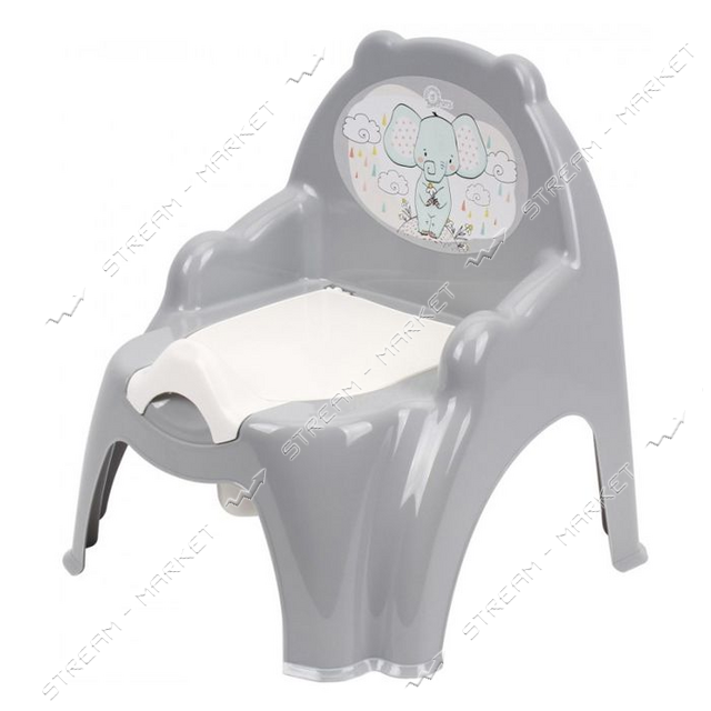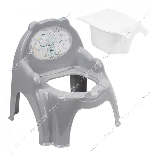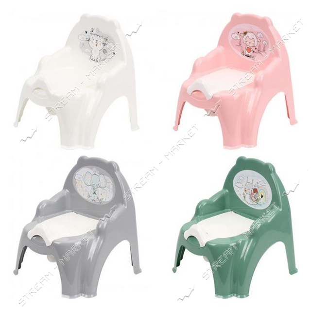 Горщик – стільчик. Зовні виглядає як стандартний стілець зі спинкою і ніжками, вниз вставляється пристосування. Модель проста в обслуговуванні і догляді. Підходить як для хлопчиків, так і для дівчаток. Має універсальну форму. Випускається в різному дизайні і колірній гамі.