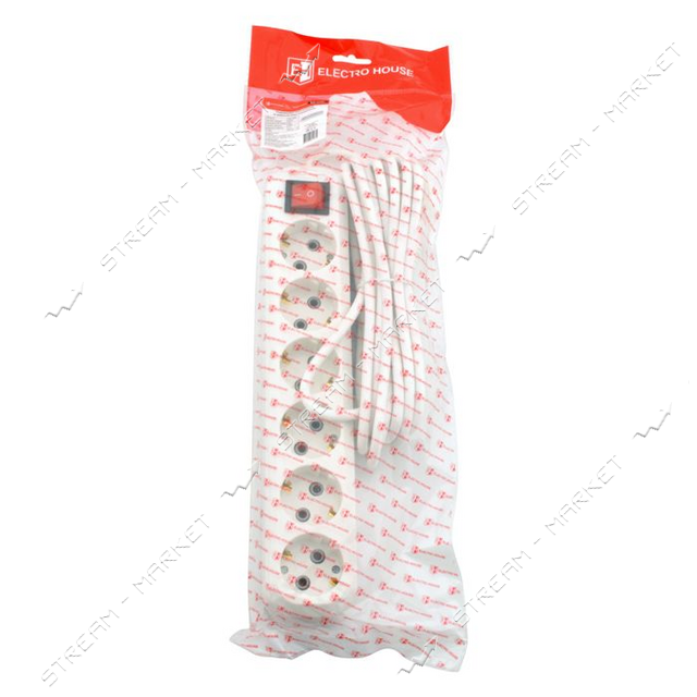 Подовжувач Electro House ЕН-2252 6 гнізд 5м із заземленням та вимикачем 16А білий