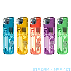 Запальничка п'єза газова кишенькова з ліхтариком прозора